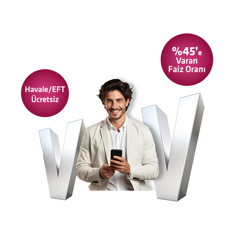 VOV Hesapta %45'e varan avantajlı faiz oranıyla bol bol kazanın. Üstelik bitmeyen hoş geldin faizi VOV hesapta sizi bekliyor.